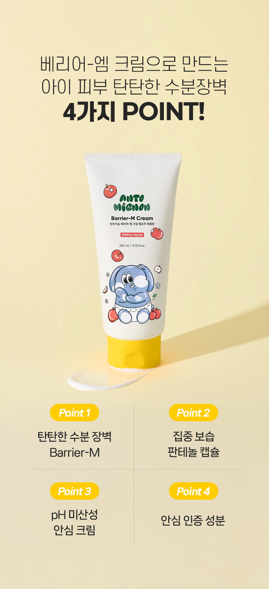 [1+1] 베리어-엠 아기 크림 330ml 멜로우애플향 판테놀 더마