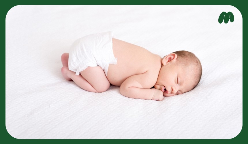 신체 요소들이 굽혀져 있는데요. 이는 엄마의 자궁 속에서 하고 있던 구부린 자세를 태어난 이후에도 한동안